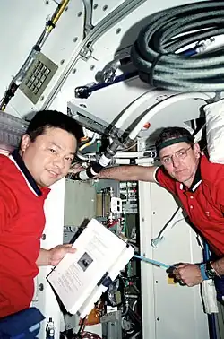 - Leroy Chiao (40), burger, missiespecialist, 3e missie (eerdere missies: STS-65 (1994) en STS-72 (1996))