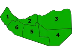 - ↑ Zie de (Somaliland) Regions and Districts Self-management Law, No. 23/2019. Zie ook hier. De districten werden vastgesteld zonder geografische afbakening.
