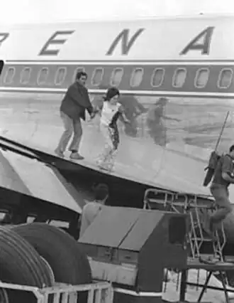 Kort na de tussenlanding van het vliegtuig in Wenen sprongen twee mannen en twee vrouwen op uit hun stoelen. De mannen begaven zich naar de cockpit, terwijl de vrouwen zich in het gangpad opstelden, gewapend met pistolen, een lading dynamiet en een handgranaat.