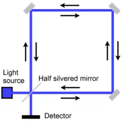 De formule voor de faseverschuiving geldt ook voor interferometers waarbij het licht een driehoekig of rechthoekig pad volgt, als de oppervlakte van de driehoek of vierkant ingevuld wordt.[1]