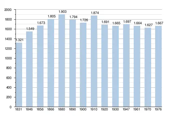 - Bronnen:NIS, Opm:1831 tot en met 1970=volkstellingen, 1976= inwoneraantal op 31 december