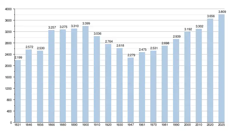 Alle historische gegevens hebben betrekking op de huidige gemeente, inclusief deelgemeenten, zoals ontstaan na de fusie van 1 januari 1977.
