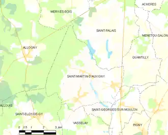 De onderstaande kaart toont de ligging van Saint-Martin-d'Auxigny met de belangrijkste infrastructuur en aangrenzende gemeenten.