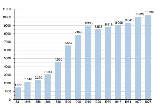 - Bron:NIS - Opm:1831 t/m 1970=volkstellingen op 31 december