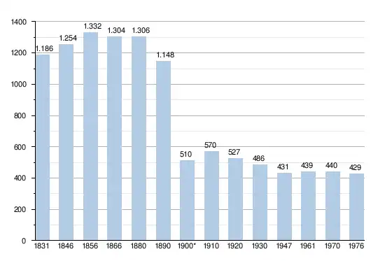 - 1900 - daling als gevolg van afsplitsing van Fontenoille