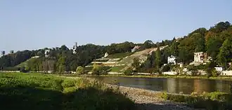 De Sächsische Weinstraße en Sächsische Weinwanderweg – twee min of meer parallel lopende toeristische routes, de een verkeersweg de andere een wandelweg – zijn ontwikkeld voor de heropleving van het toerisme. Het wijngebied is voor Dresden bijzonder waardevol, zowel voor de stad als de onmiddellijke omgeving. Het Elbe-dal bij Dresden – en daarmee het wijngaarden-landschap – stond vanaf 2004 op de UNESCO werelderfgoedlijst. In 2009 werd deze titel echter weer ontnomen wegens de aanleg van de Waldschlösschenbrug.