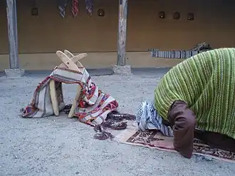 Indien men het gebed alleen verricht of als men imam is, wordt een 'sutrah' aanbevolen, een object tussen degene die bidt en tussen anderen.[2] Het zou gaan om een afstand van 3 el (69 cm) tussen diegene die bidt en de sutrah. Degene die tussen de sutrah en de biddende passeert, zou volgens de overlevering een duivel met zich meedragen. De sutrah kan in de moskee een pilaar of iemand die op de grond zit zijn. Mohammed zou zo als sutrah een rijdier, een boom, een zadel en het bed waarop Aïsha lag te slapen hebben gebruikt.[3]