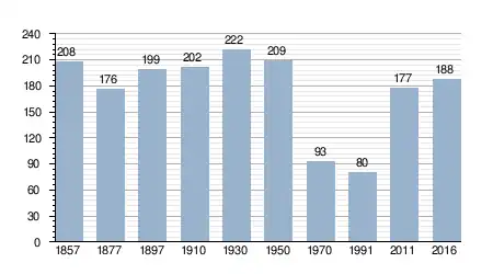 - Bron: INE, 1857-2011: volkstellingen