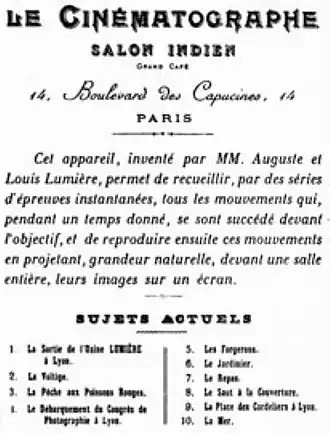 - (fr) La première séance publique payante op Institut-Lumière.org