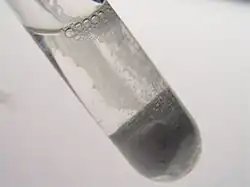 Wanneer de reactie in geconcentreerder salpeterzuur wordt uitgevoerd, ontstaat onmiddellijk stikstofdioxide: