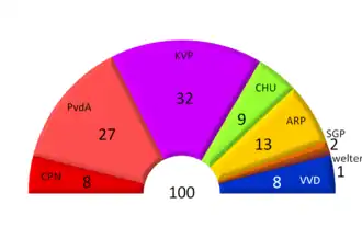 - 10 augustus: Johannes Henricus van Maarseveen, Maan Sassen, Josef van Schaik (allen KVP), Willem Drees en Sicco Mansholt (beiden PvdA) namen ontslag vanwege hun benoeming tot minister in het kabinet-Drees-Van Schaik. Hun opvolgers waren Martien van der Weijden, Marga Klompé, Jo Cals (allen KVP), Jan Emmens en Jan Tuin (beiden PvdA). Klompé, Emmens en Tuin werden op 12 augustus dat jaar geïnstalleerd, van der Weijden op 13 augustus en Cals op 19 augustus.