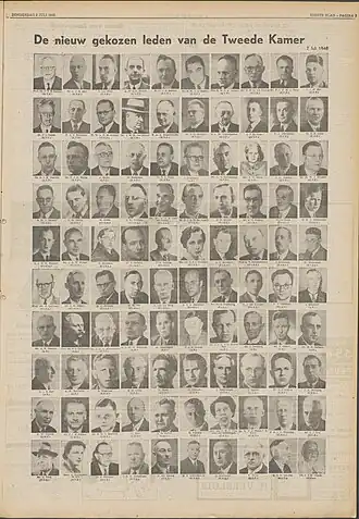 - Piet Lieftinck, Wim Thomassen (beiden PvdA), G. van Praag (CPN) nam zijn verkiezing als Tweede Kamerlid niet aan. Hun opvolgers waren Henk van den Born, Jacques de Kadt (beiden PvdA) en Huub Hermans (CPN). Van den Born en de Kadt werden op 27 juli 1948 geïnstalleerd, Hermans op 13 augustus dat jaar.