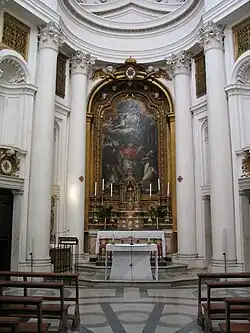 De Fransman Pierre Mignard heeft voor het hoogaltaar het schilderij “Sint Carolus Borromeüs beschouwt de Heilige Drie-eenheid met de Heiligen Johannes van Matha en Felix van Valois” gemaakt. Boven het schilderij is het wapen van de Trinitariërs te zien.