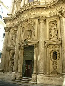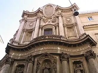 - De complexe façade past in de ontwikkeling om het volume van de gevels te vergroten. Hij bouwt voort op het werk van Pietro da Cortona, in het bijzonder de Santi Luca e Martina en de Santa Maria della Pace.