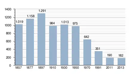 - Bron: INE, 1857-2011: volkstellingen