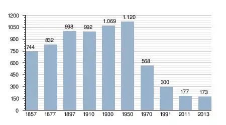 - Bron: INE, 1857-2011: volkstellingen