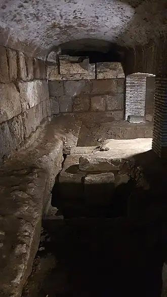 De kerk staat in zijn geheel over de middelste van de drie tempels heen, die waarschijnlijk gewijd was aan Juno Sospita. De zeven zuilen in de zuidelijke muur behoorden aan de Tempel van Spes en de acht zuilen in de noordelijke muur waren waarschijnlijk van de Tempel van Janus. De drie tempels werden in de 1e eeuw n.Chr. herbouwd, maar stammen oorspronkelijk uit de 3e en 2e eeuw v.Chr.