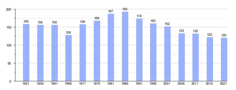 | Bron: 1951–1986[1], 1991–1996[3], 2001–2006[4], 2011–2016[5], 2021[6] |