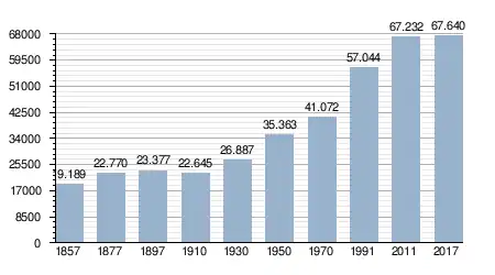 - Bron: INE; 1857-2011: volkstellingen