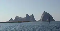 Het eiland heeft vijf karakteristieke bergtoppen. Het hoogste punt is Trænstaven, een berg die een hoogte heeft van 338 meter boven zeeniveau. Verder bevindt zich op het eiland de grot van Kirkehellaren.