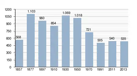 - Bron: INE, 1857-2011: volkstellingen