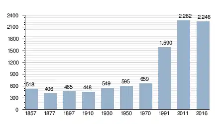 - Bron: INE, 1857-2011: volkstellingen