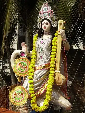 Sarasvati (Sanskriet: सरस्वती, waterige) is een riviergodin uit de Veda's. Daarna is zij, voornamelijk als Hindoeïstische godheid, de godin van kennis, kunst, muziek, dichtkunst, wijsheid, retorica, schrift en literatuur. Want dat alles borrelt als vanzelf op uit het aldoordringend water van de oeroceaan, de bron van alle leven. Zij is het vrouwelijke scheppingsprincipe, daar waar het mannelijke haar echtgenoot Brahma is. Ze verblijven samen in Brahmaloka. Andere namen van Sarasvati zijn: Satarupa, Savitri, Gayatri en Brahmani. In de latere mythologie werd ze met Vâch, de godin van de spraak, geïdentificeerd.