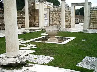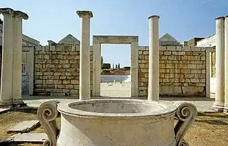 - Het grote gymnasium met de synagoge. Dit werd gebouwd onder keizer Septimius Severus rond 200 n.Chr. Het grote complex toont het belang van de stad en van zijn joodse gemeenschap in die tijd. Het werd in 616 door de Sassaniden vernietigd.