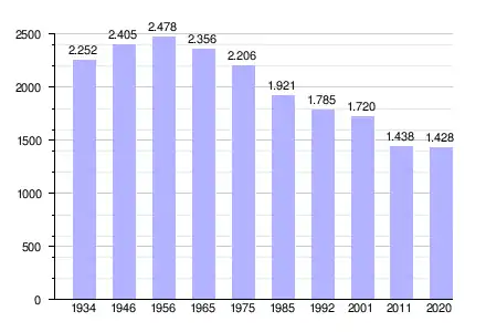 Van de 1.438 inwoners die in februari 2011 werden geregistreerd, waren er 163 jonger dan 15 jaar oud (11,3%), gevolgd door 888 personen tussen de 15-64 jaar oud (61,8%) en 387 personen van 65 jaar of ouder (26,9%).[3]