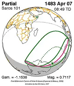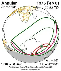 Saros 101 zonsverduisteringserie als bewegend beeld