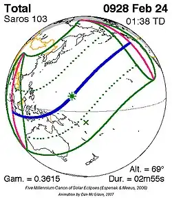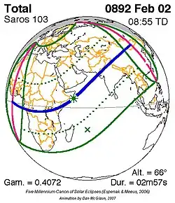 Saros 103 zonsverduisteringserie als bewegend beeld