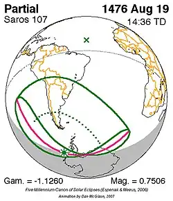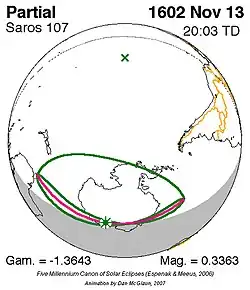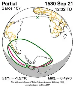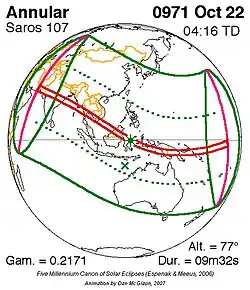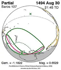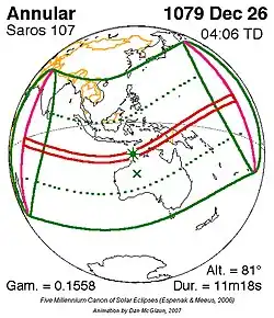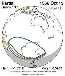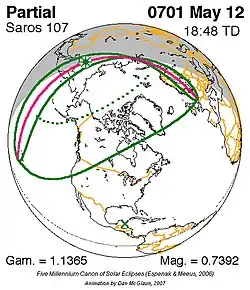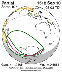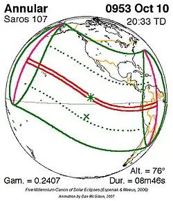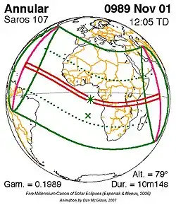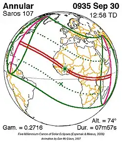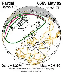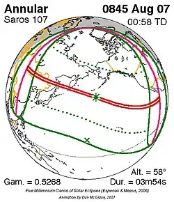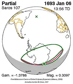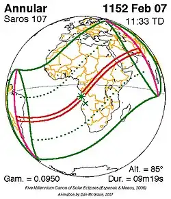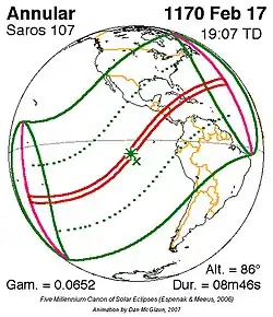 Saros 107 zonsverduisteringserie als bewegend beeld