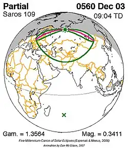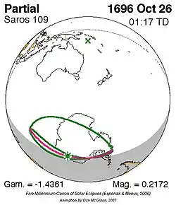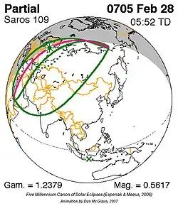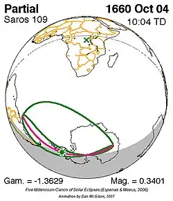 Saros 109 zonsverduisteringserie als bewegend beeld