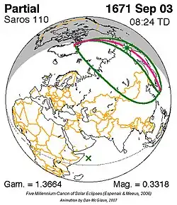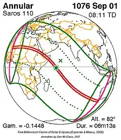 Saros 110 zonsverduisteringserie als bewegend beeld