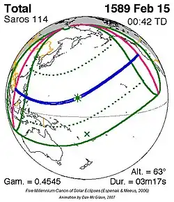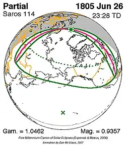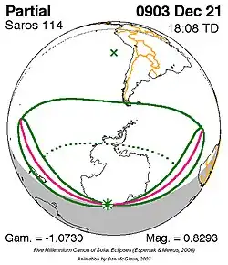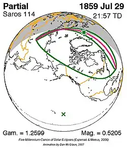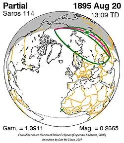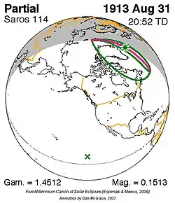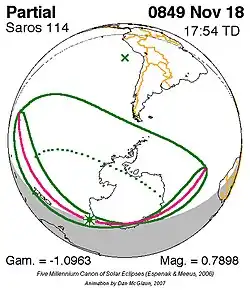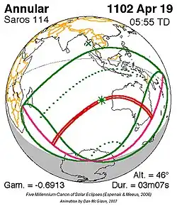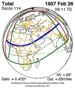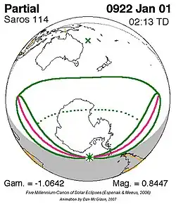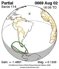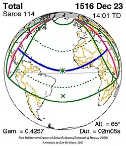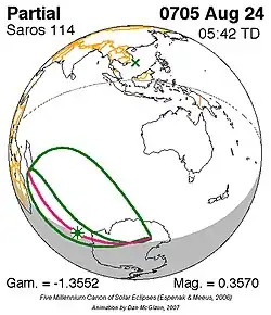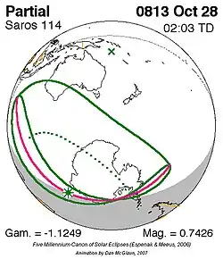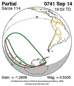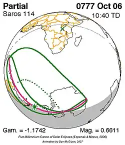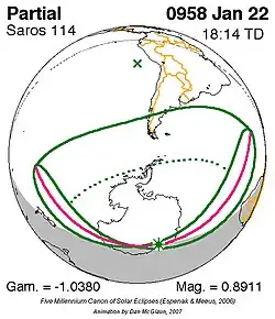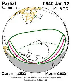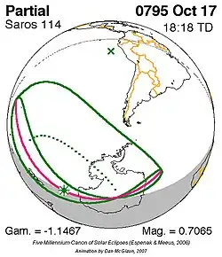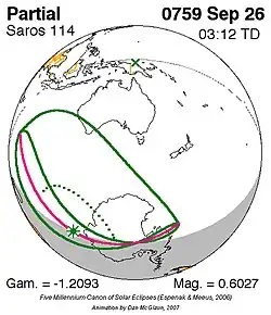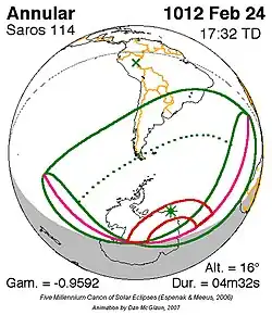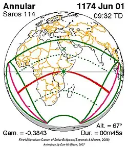 Saros 114 zonsverduisteringserie als bewegend beeld