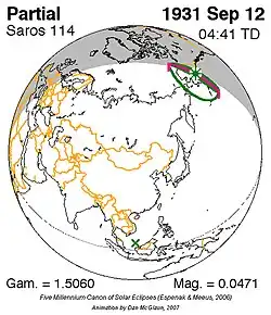 Saros 114 is een reeks zonsverduisteringen in de periode 23 juli 651 t/m 12 september 1931 . Deze serie duurde 1280 jaar en 51 dagen, bevatte 72 verduisteringen en viel samen met de Inexserienrs 13 t/m 84.