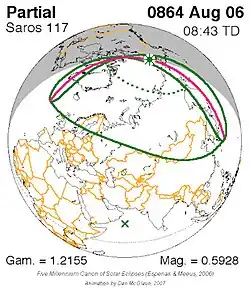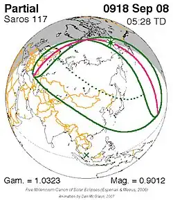 Saros 117 zonsverduisteringserie als bewegend beeld