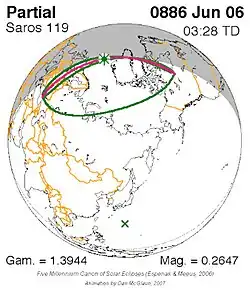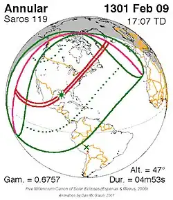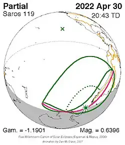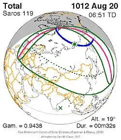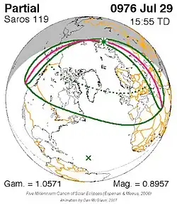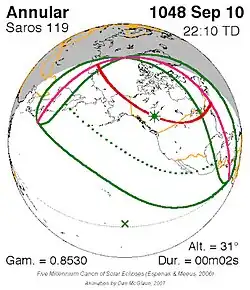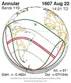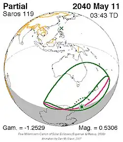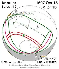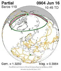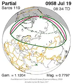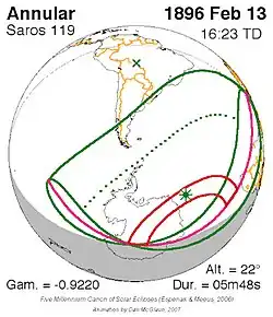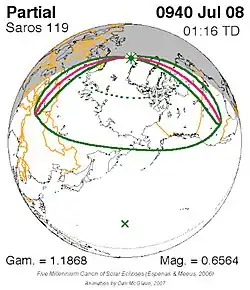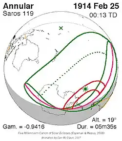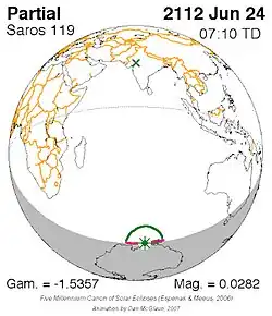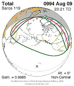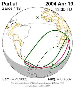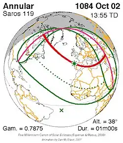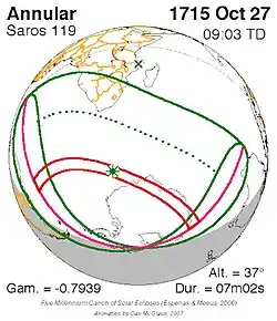 Saros 119 zonsverduisteringserie als bewegend beeld