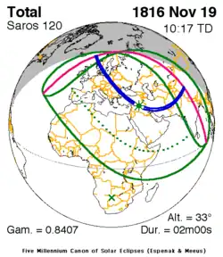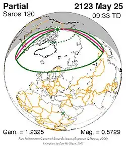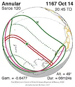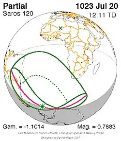 Saros 120 is een reeks zonsverduisteringen in de periode 27 mei 933 t/m 7 juli 2195 . Deze serie duurt 1262 jaar en 41 dagen, bevat 71 verduisteringen en valt samen met de Inexserienrs 19 t/m 89.
