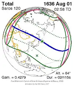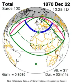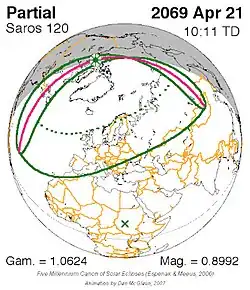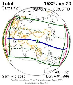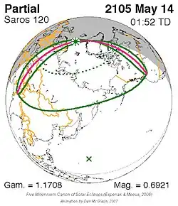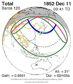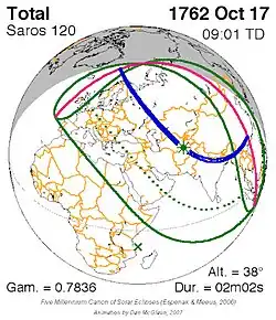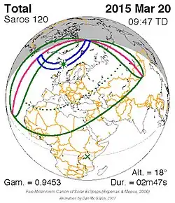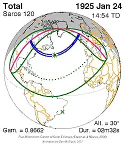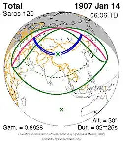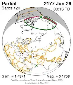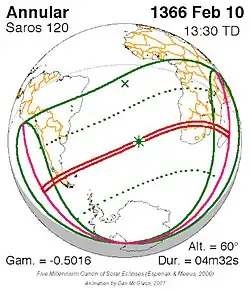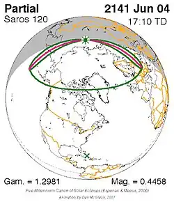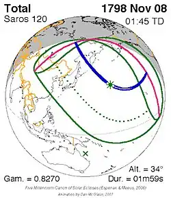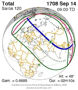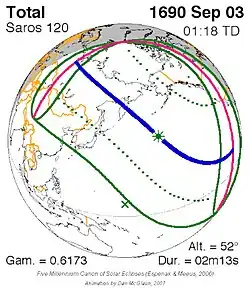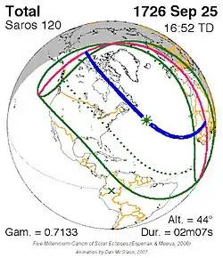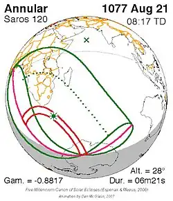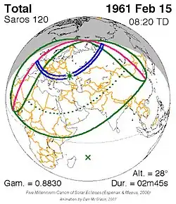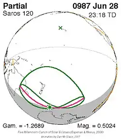 Saros 120 zonsverduisteringserie als bewegend beeld
