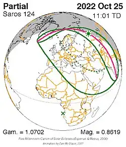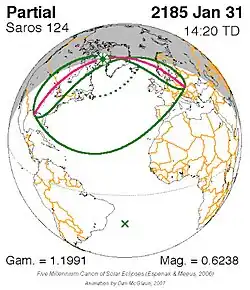 Saros 124 zonsverduisteringserie als bewegend beeld