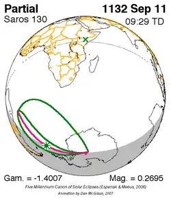 Saros 130 is een reeks zonsverduisteringen in de periode 20 augustus 1096 t/m 25 oktober 2394 . Deze serie duurt 1298 jaar en 66 dagen, bevat 73 verduisteringen en valt samen met de Inexserienrs 12 t/m 84.