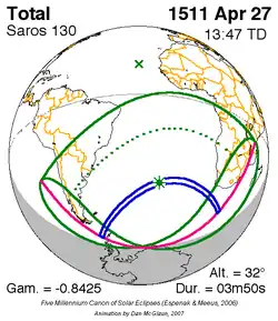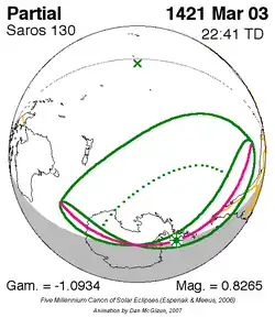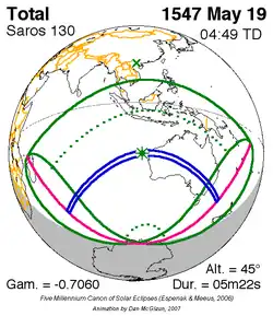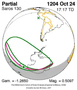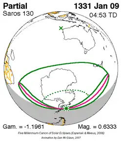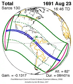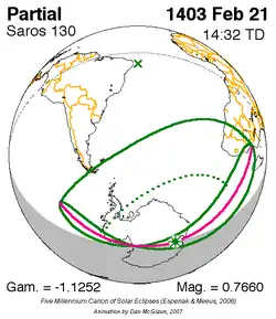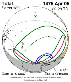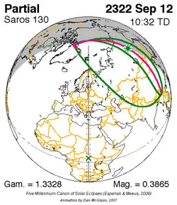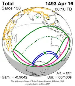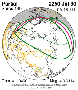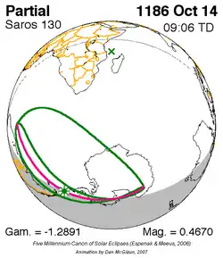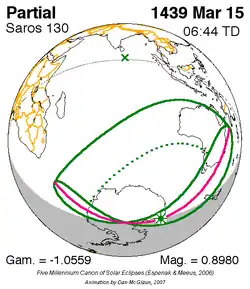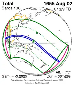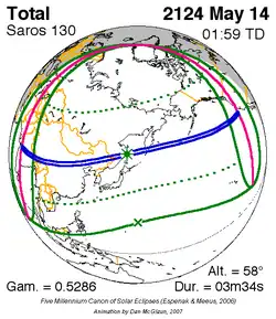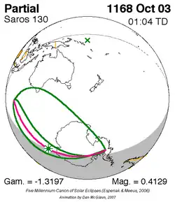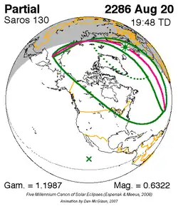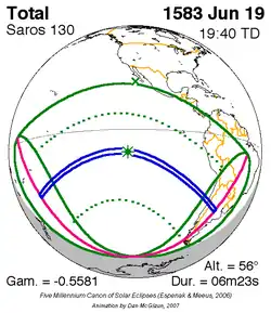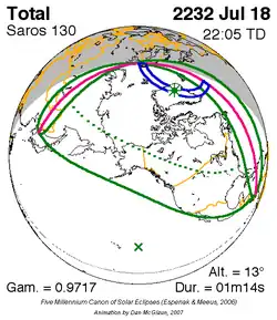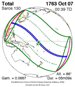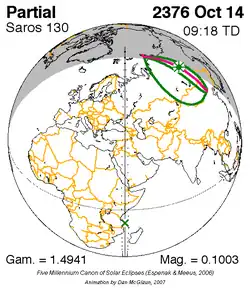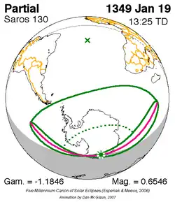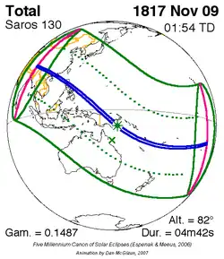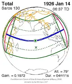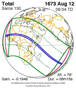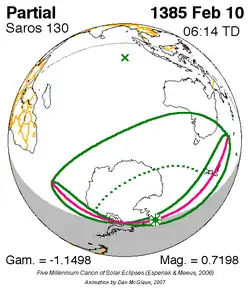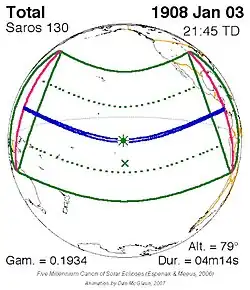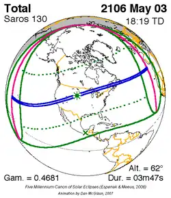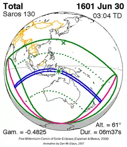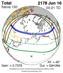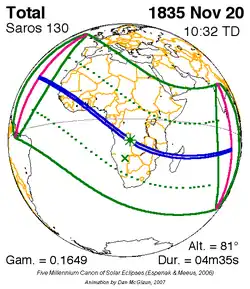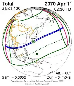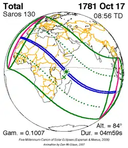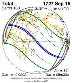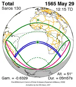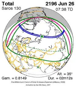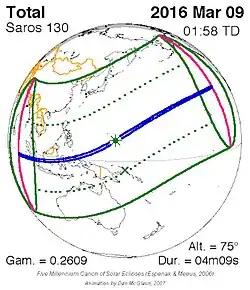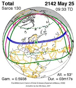 Saros 130 zonsverduisteringserie als bewegend beeld