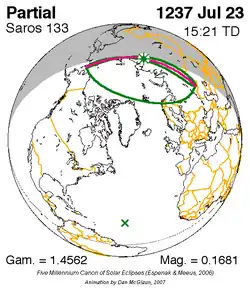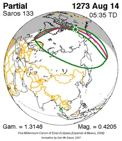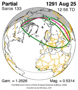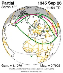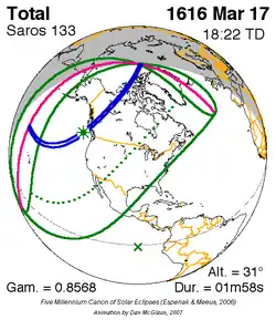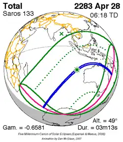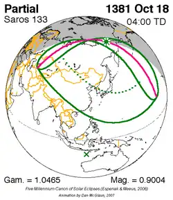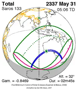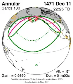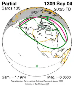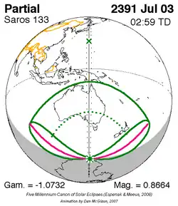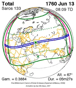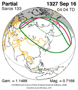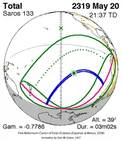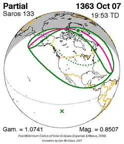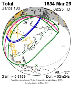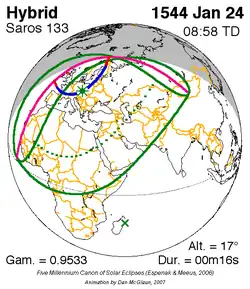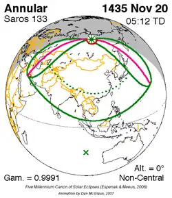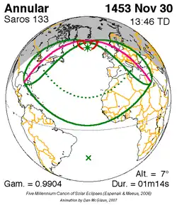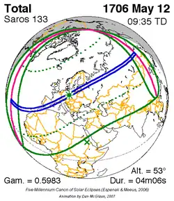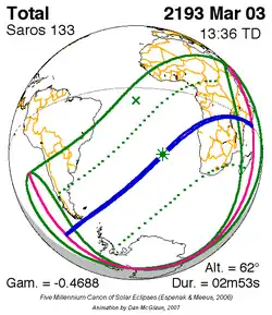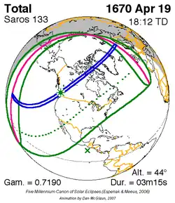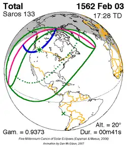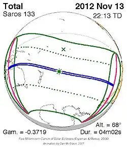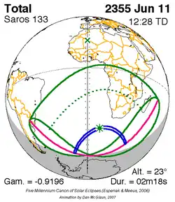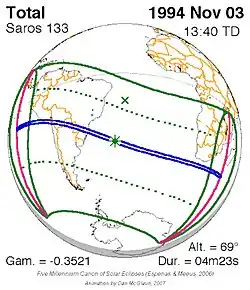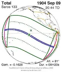 Saros 133 zonsverduisteringserie als bewegend beeld