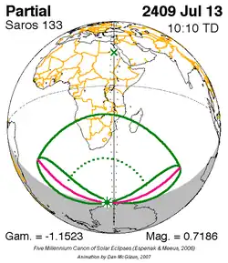 Saros 133 is een reeks zonsverduisteringen in de periode 13 juli 1219 t/m 5 september 2499 . Deze serie duurt 1280 jaar en 54 dagen, bevat 72 verduisteringen en valt samen met de Inexserienrs 14 t/m 85.