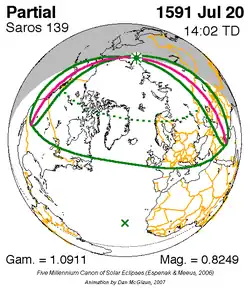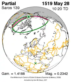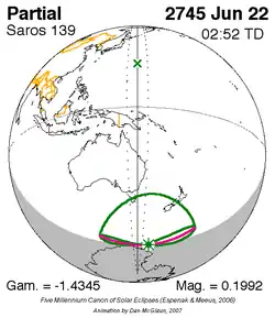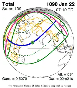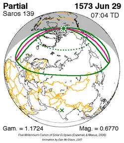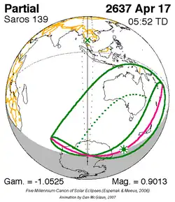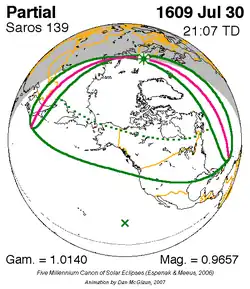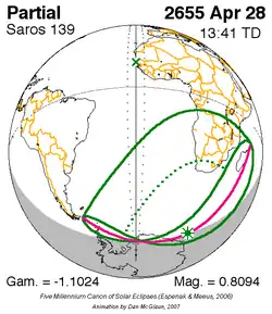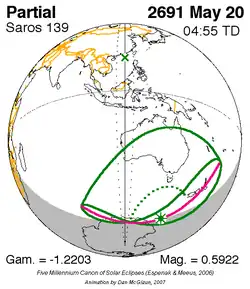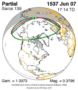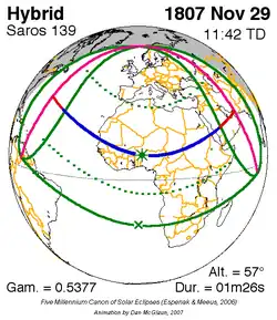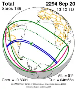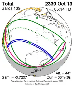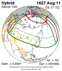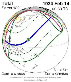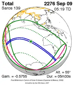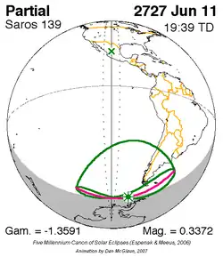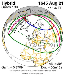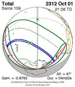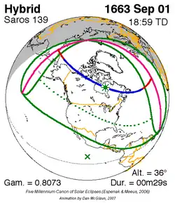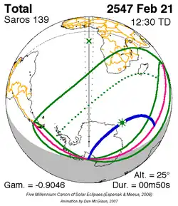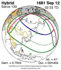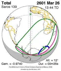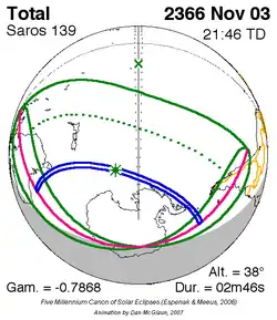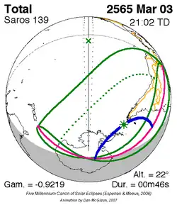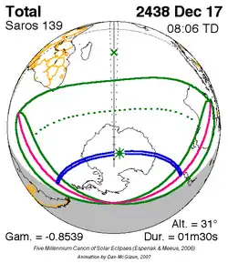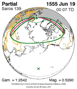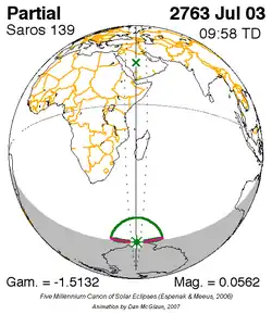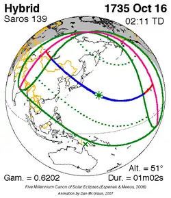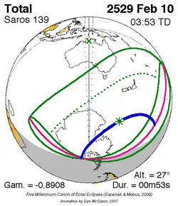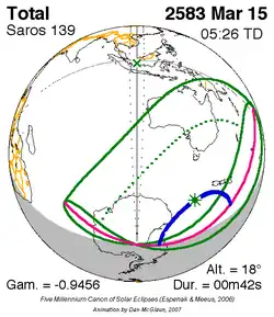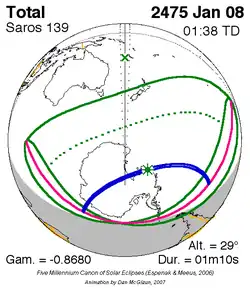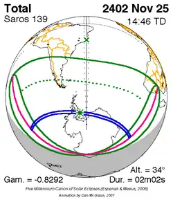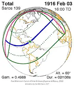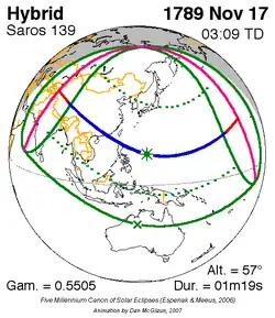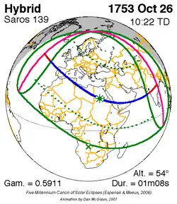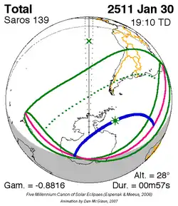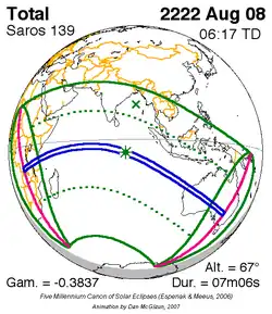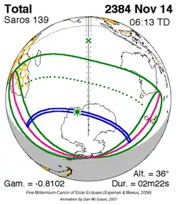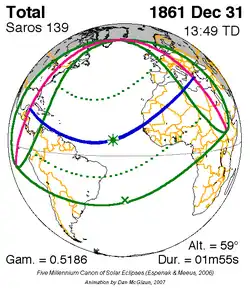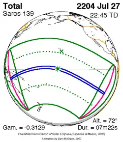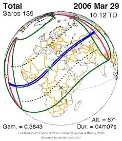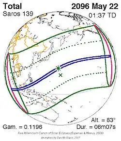 Saros 139 zonsverduisteringserie als bewegend beeld