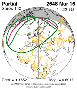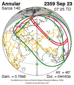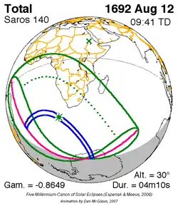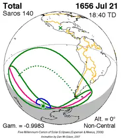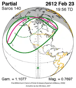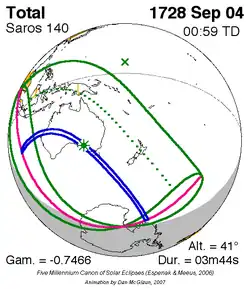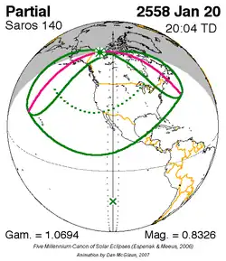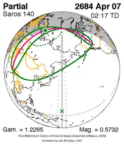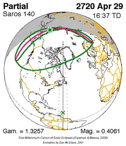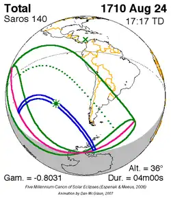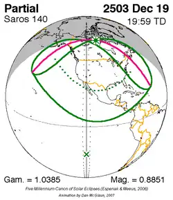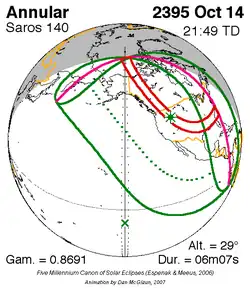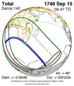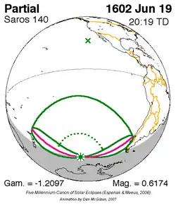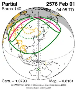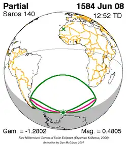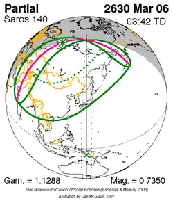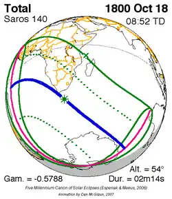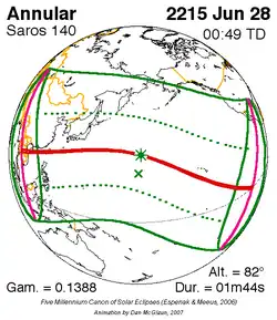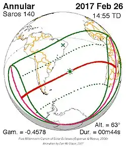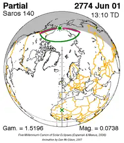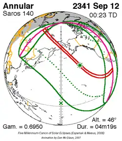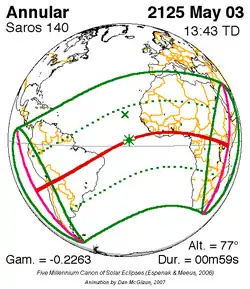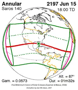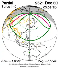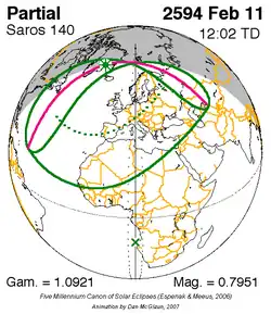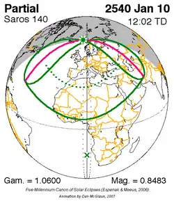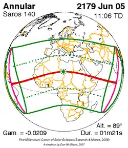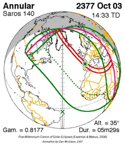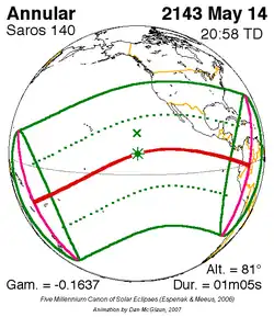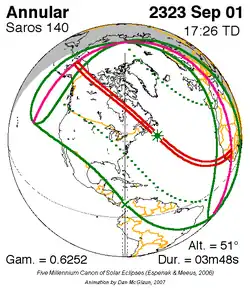 Saros 140 zonsverduisteringserie als bewegend beeld