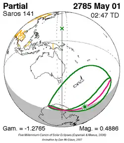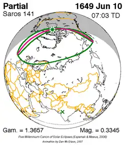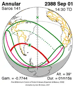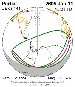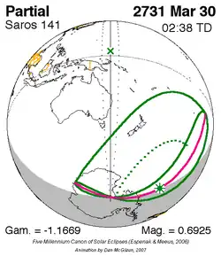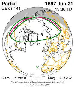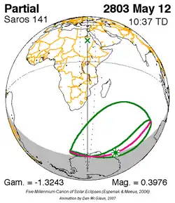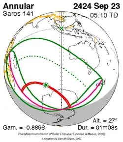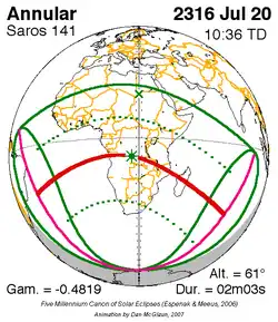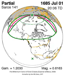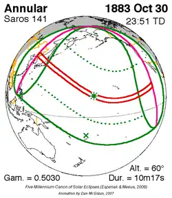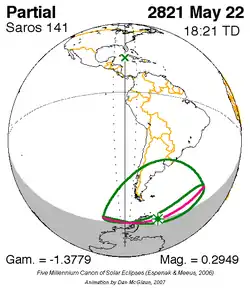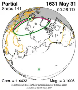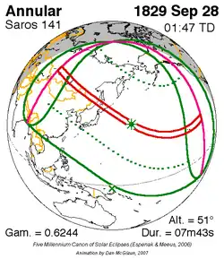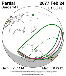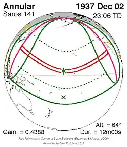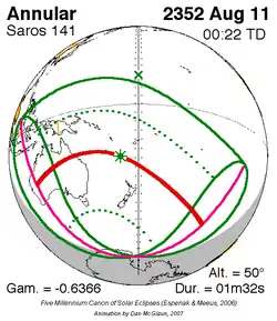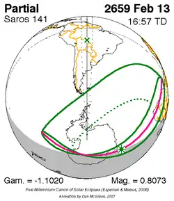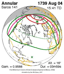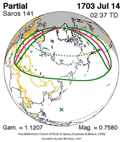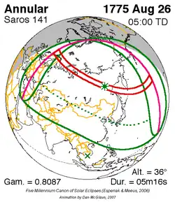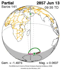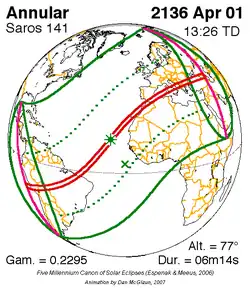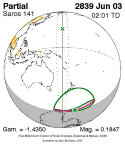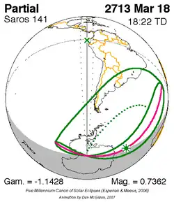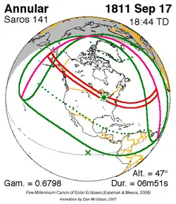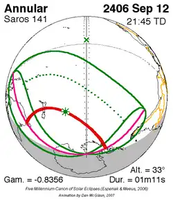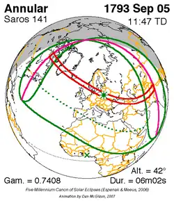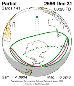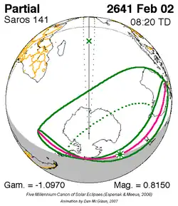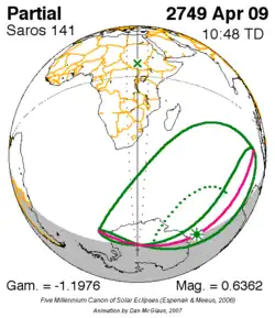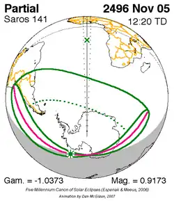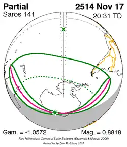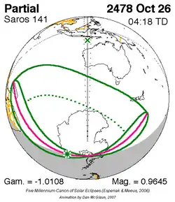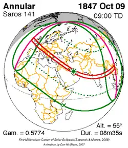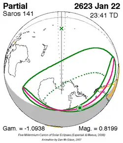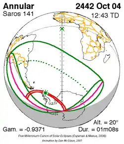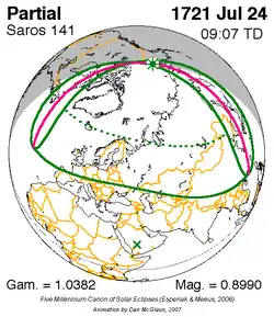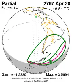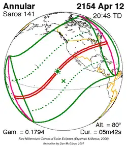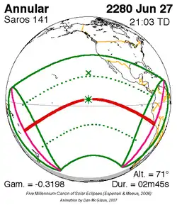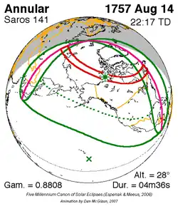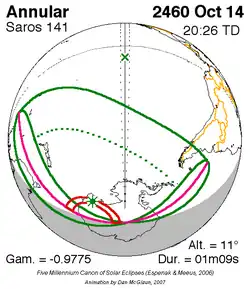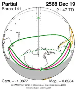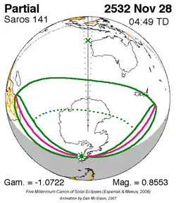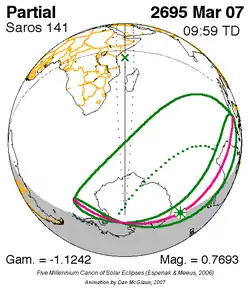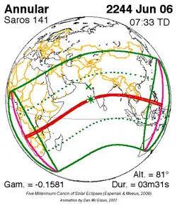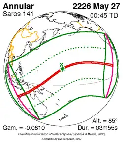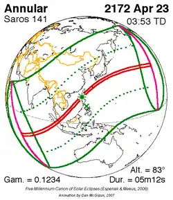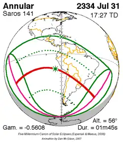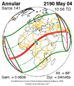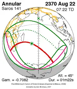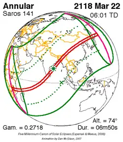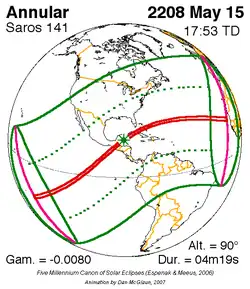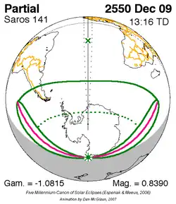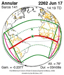 Saros 141 zonsverduisteringserie als bewegend beeld
