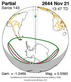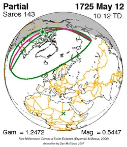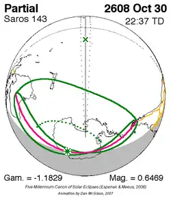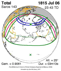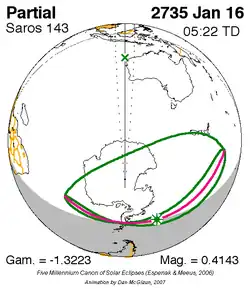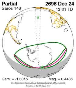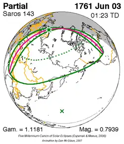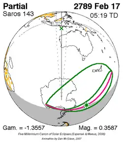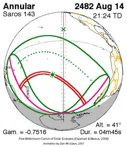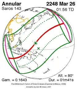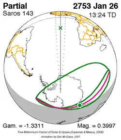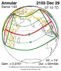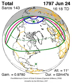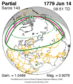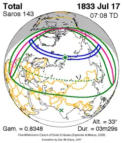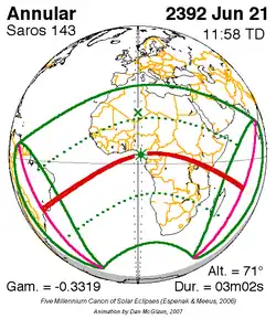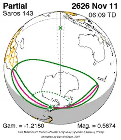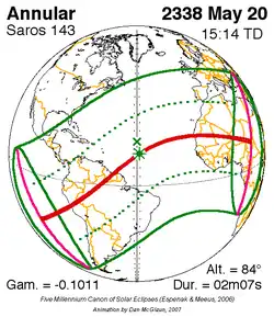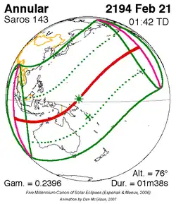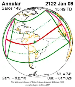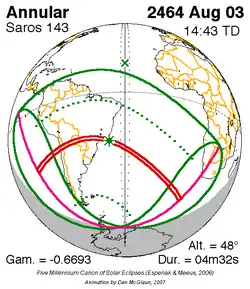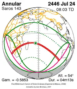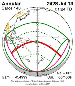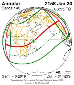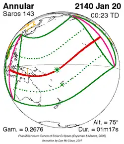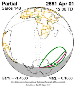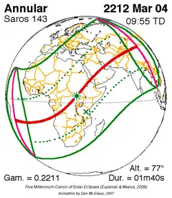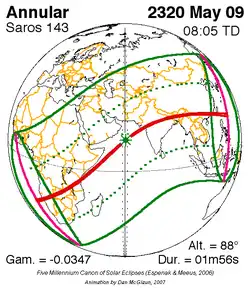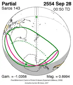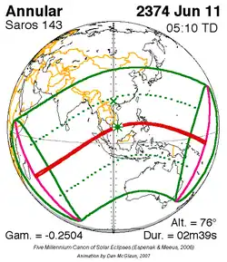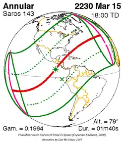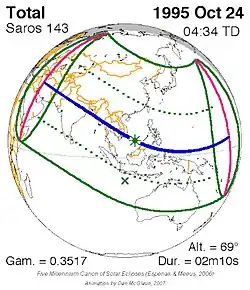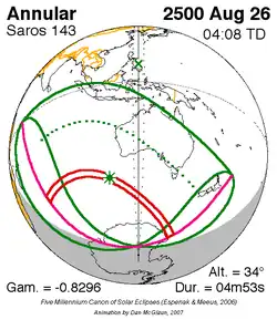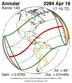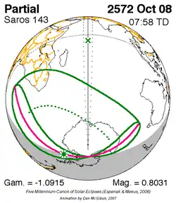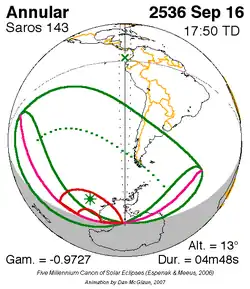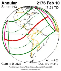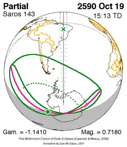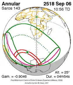 Saros 143 zonsverduisteringserie als bewegend beeld
