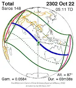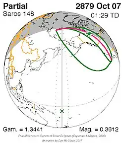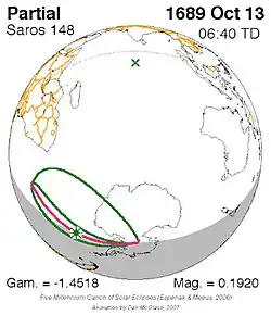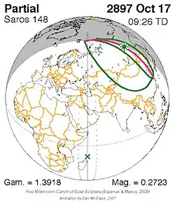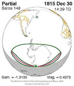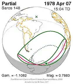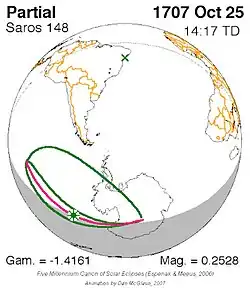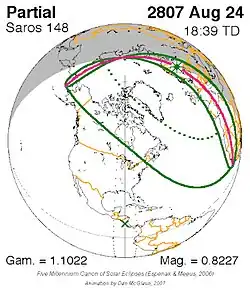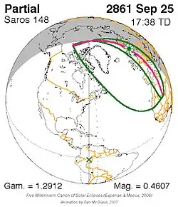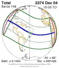 Saros 148 zonsverduisteringserie als bewegend beeld
